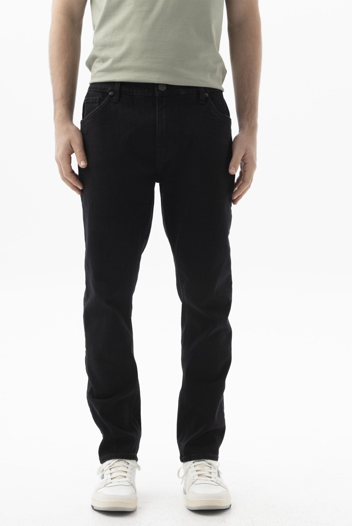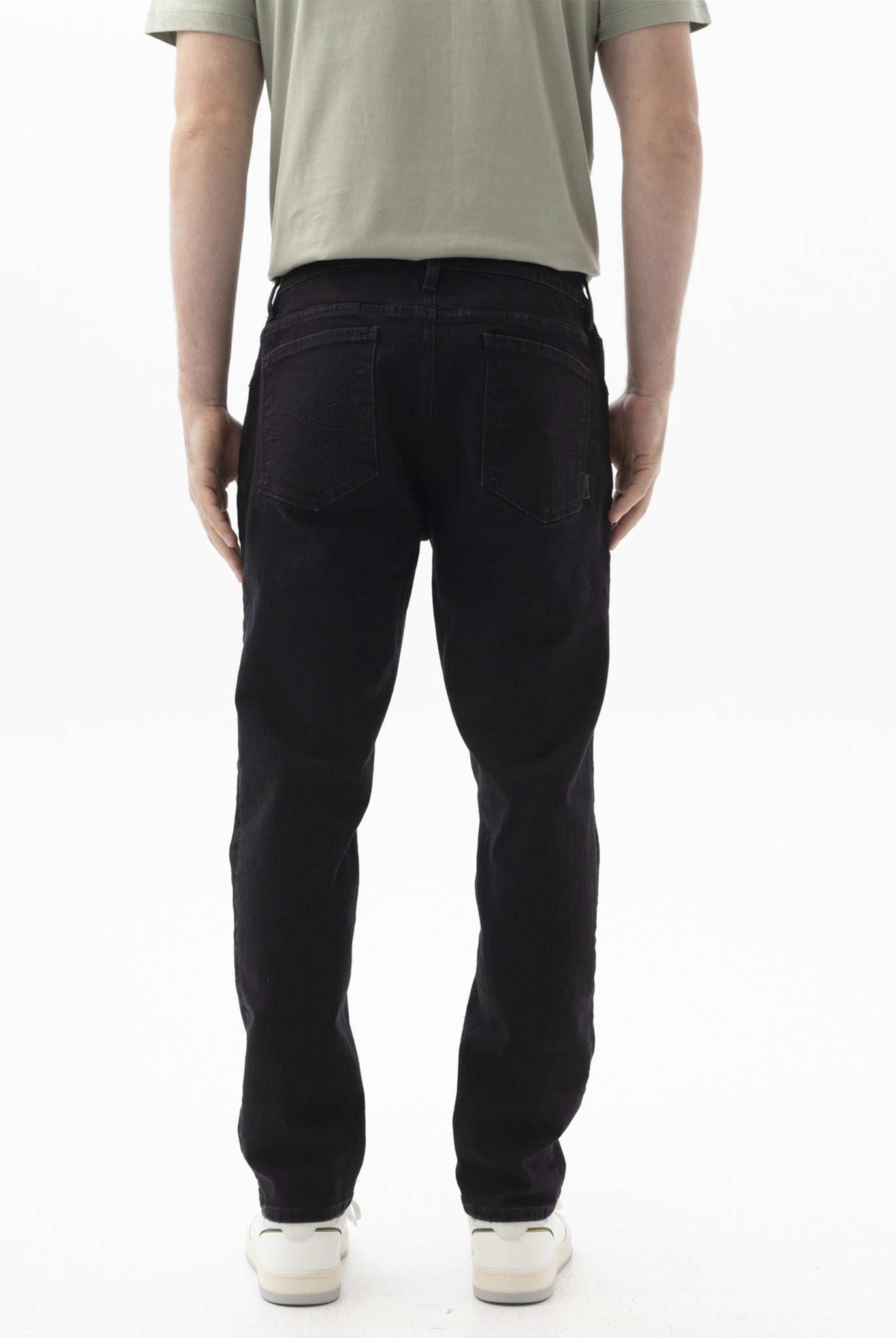 Especificaciones del fit: Los jeans Tapered generan un contraste único de amplitud en cadera y muslo; siendo un poco más ajustados desde la rodilla hasta la bota. ¡Eso sí! Sin dejar de ser cómodos y flexibles. Descripción técnica de la prenda: - Tapered fit - Tiro medio - Bota ajustada - Black denim - Cinco bolsillos - Ajuste con cierre y botón. La opción más acertada para los planes casuales con amigos o los fines de semana. Combínalo con una camiseta negra para crear un total look digno de elogios y miradas. Material: Elaborado en 68% algodón, 27% poliéster, 3% rayón y 2% elastano.