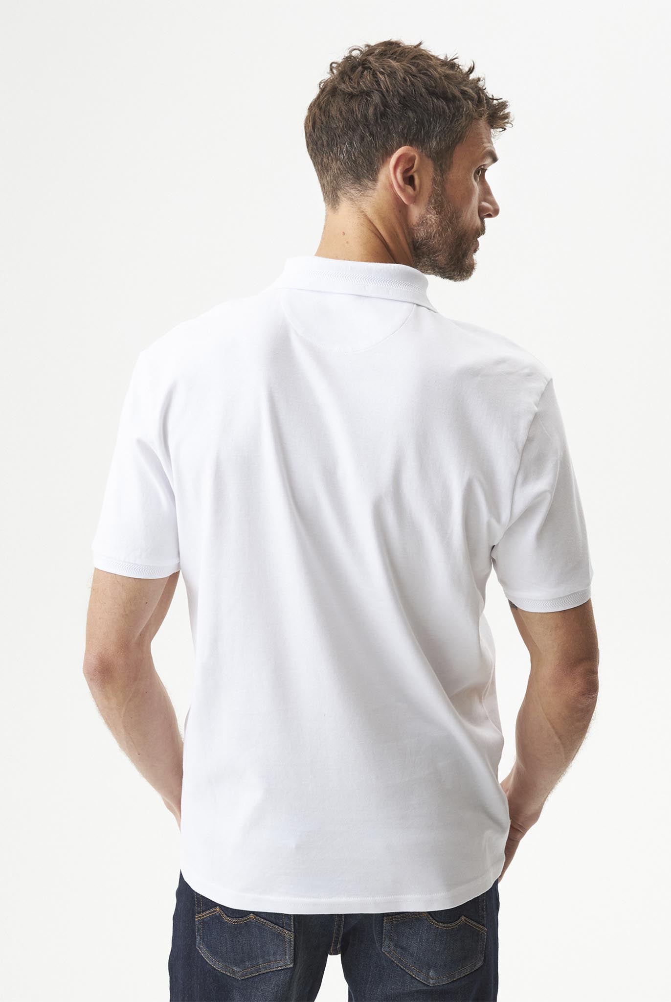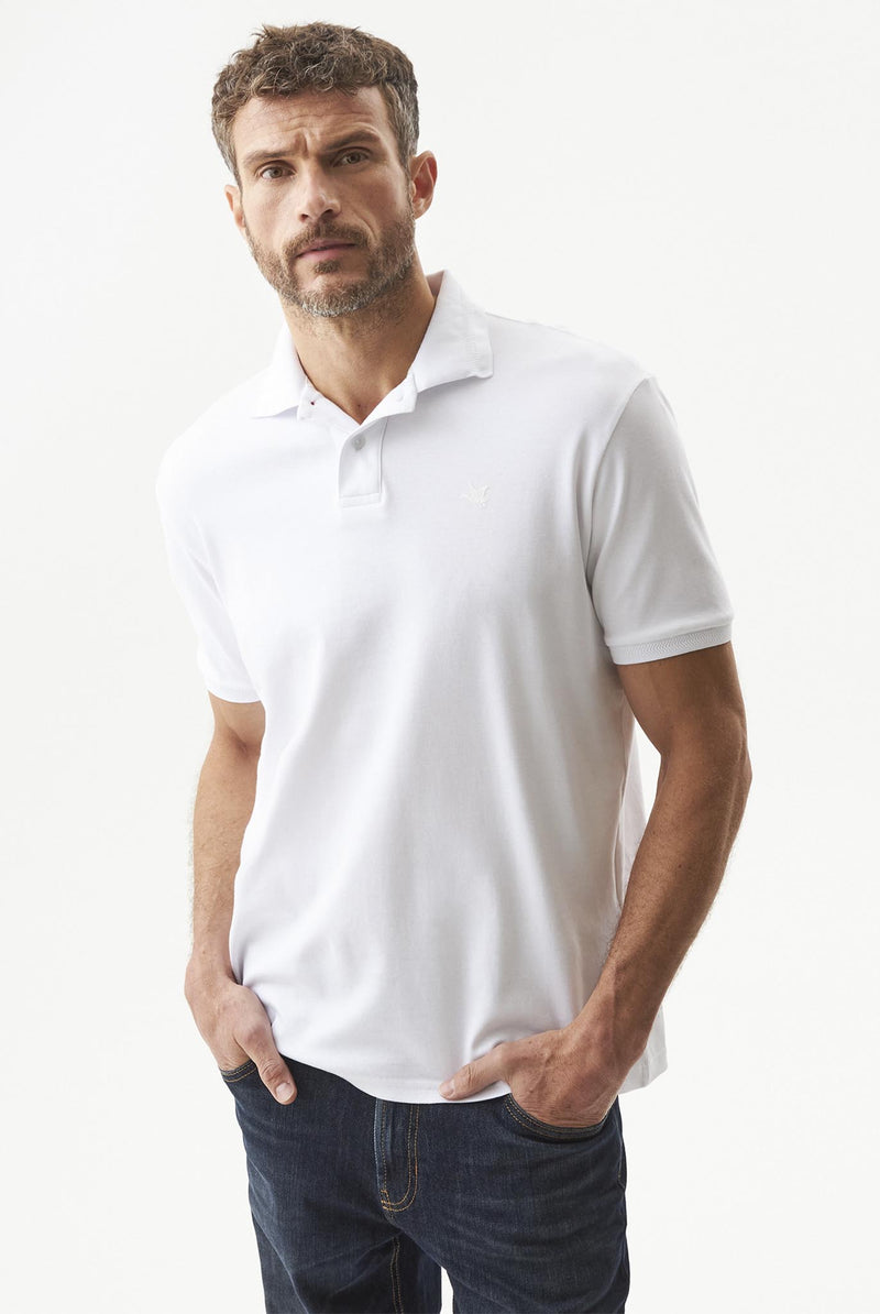 Camiseta para hombre tipo polo, classic fit (silueta amplia). Manga corta, cuello y puños tejidos estructurados, perilla de botones tono a tono. Elaborada en 100% algodón, tela suave y natural. Gráfico estampado en contraste en el frente. Marquilla tejida en el costado lateral.