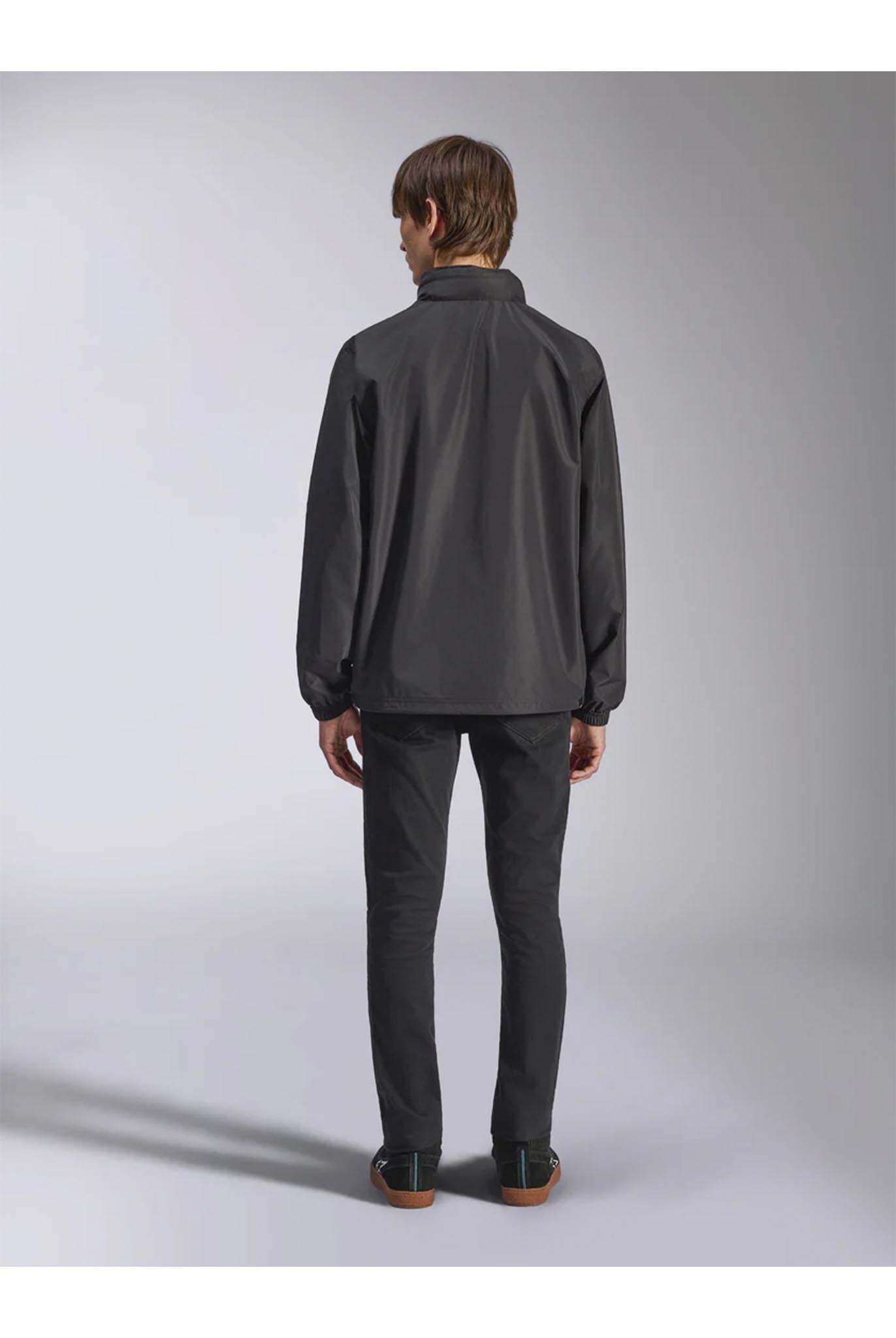 - Capucha fija, brazos precurvados, cremallera frontal con espiral invertida revestida, bolsillos para las manos con cremallera
