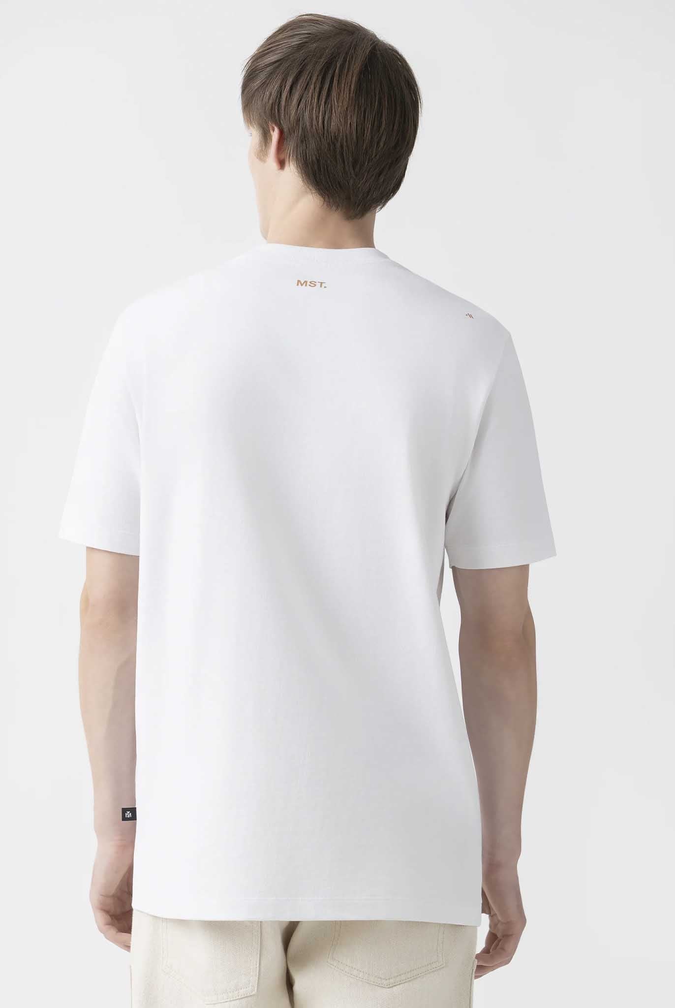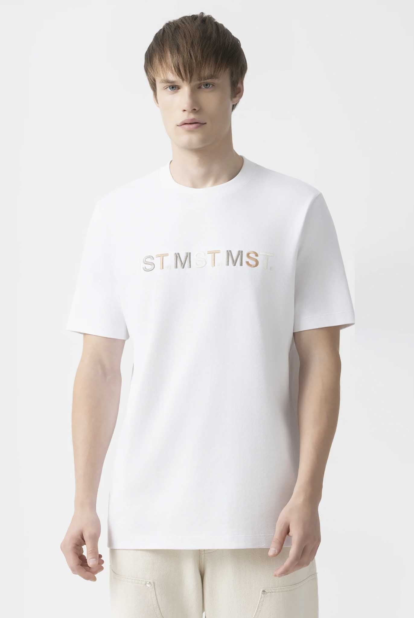 Bowen es una T-shirt masculina confeccionada en 100% algodón ultra siliconado de alta calidad, tratado para ofrecer una superficie suave y un acabado impecable. En el frente, el logo MST se repite de forma lineal mediante bordado plano de alta precisión, combinando tres colores que aportan contraste y definición. En la parte posterior, los logos tradicionales de la marca se aplican en estampado plano, garantizando colores sólidos, excelente adherencia y estabilidad dimensional. Una pieza que destaca por su detalle técnico y su estética equilibrada.
