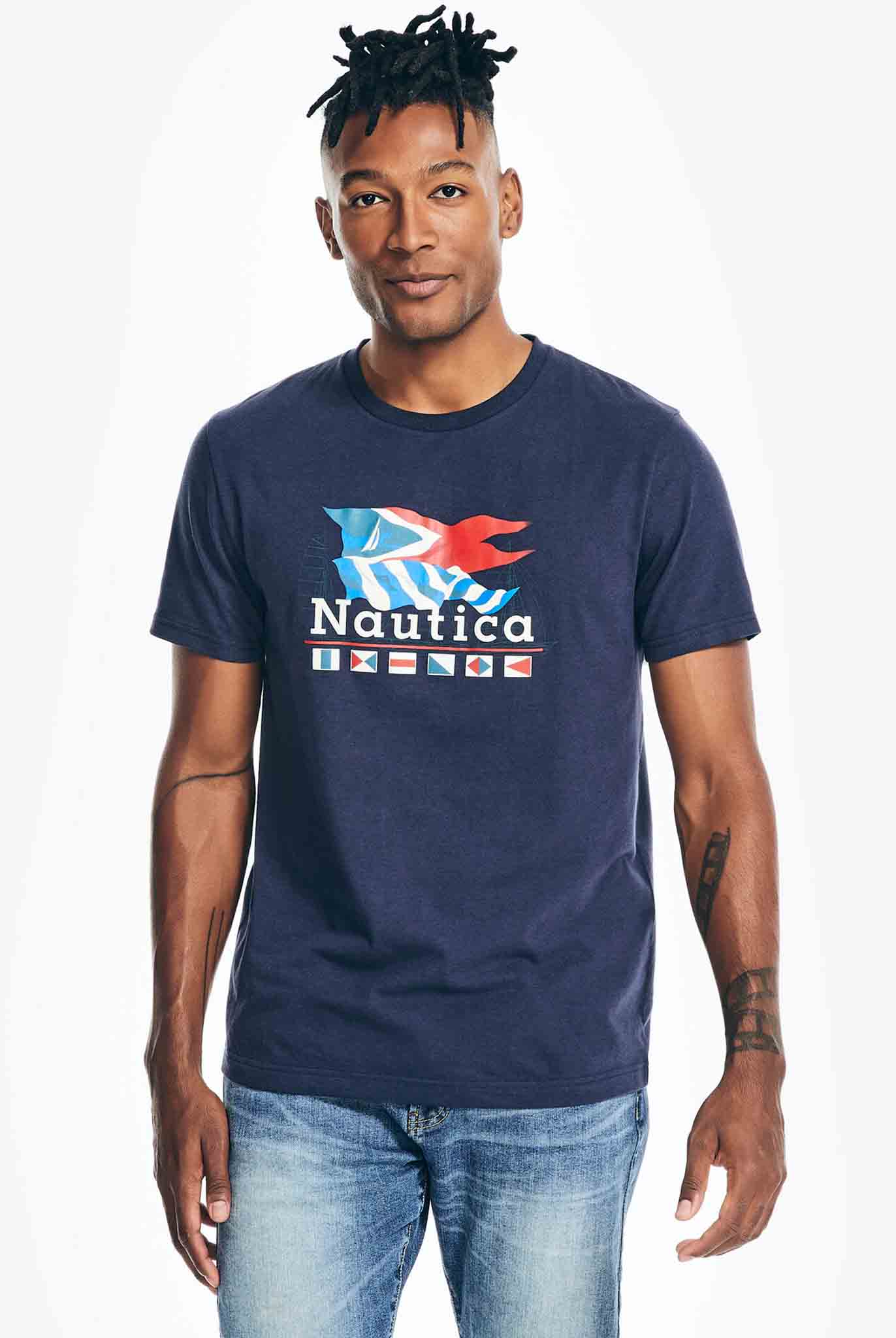 Camiseta Nautica Con Bandera Azul Marino