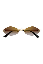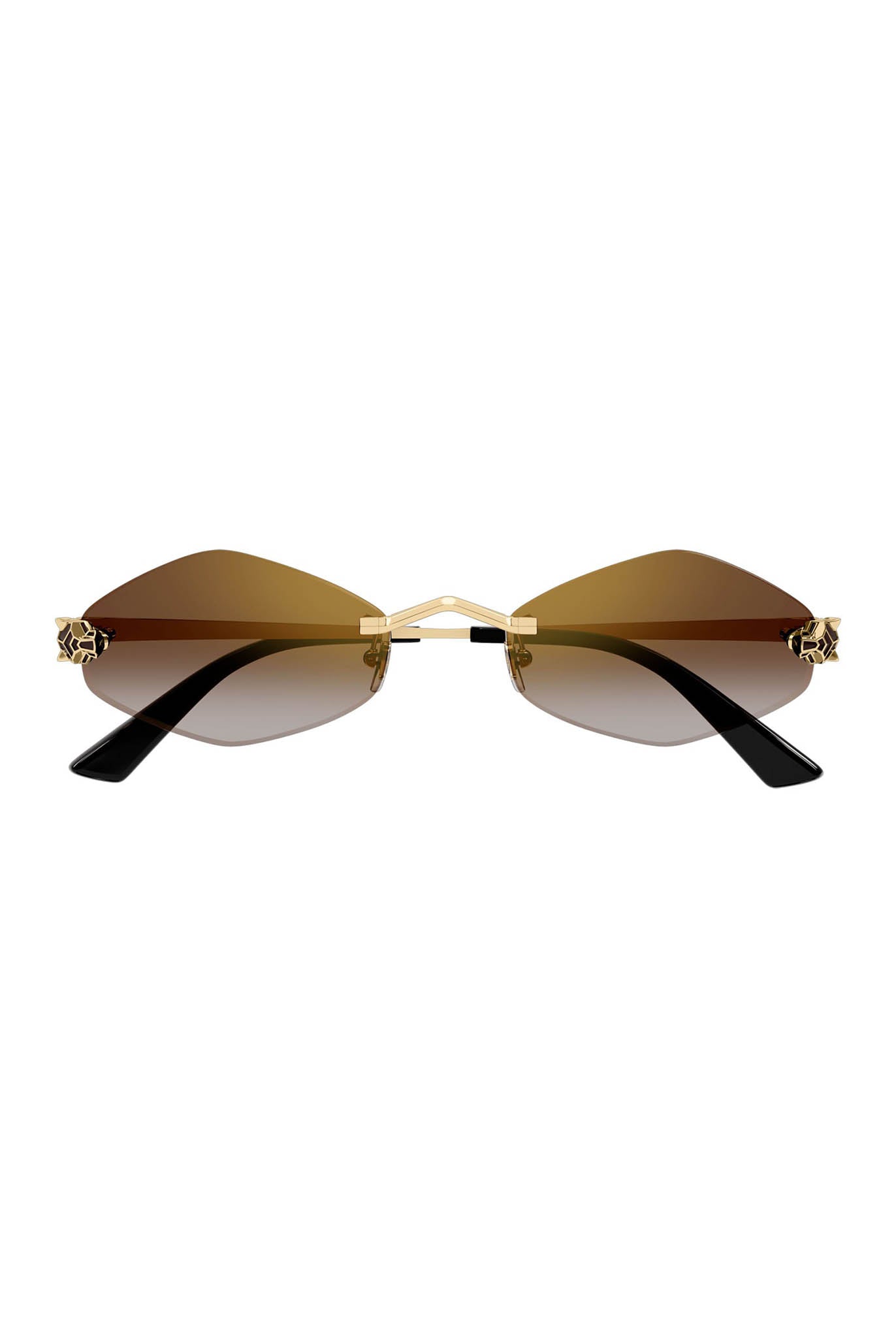 Moderna y femenina forma de ojo de gato sin montura, enriquecida con una cabeza de Panthère tridimensional con detalles esmaltados en el frente. |